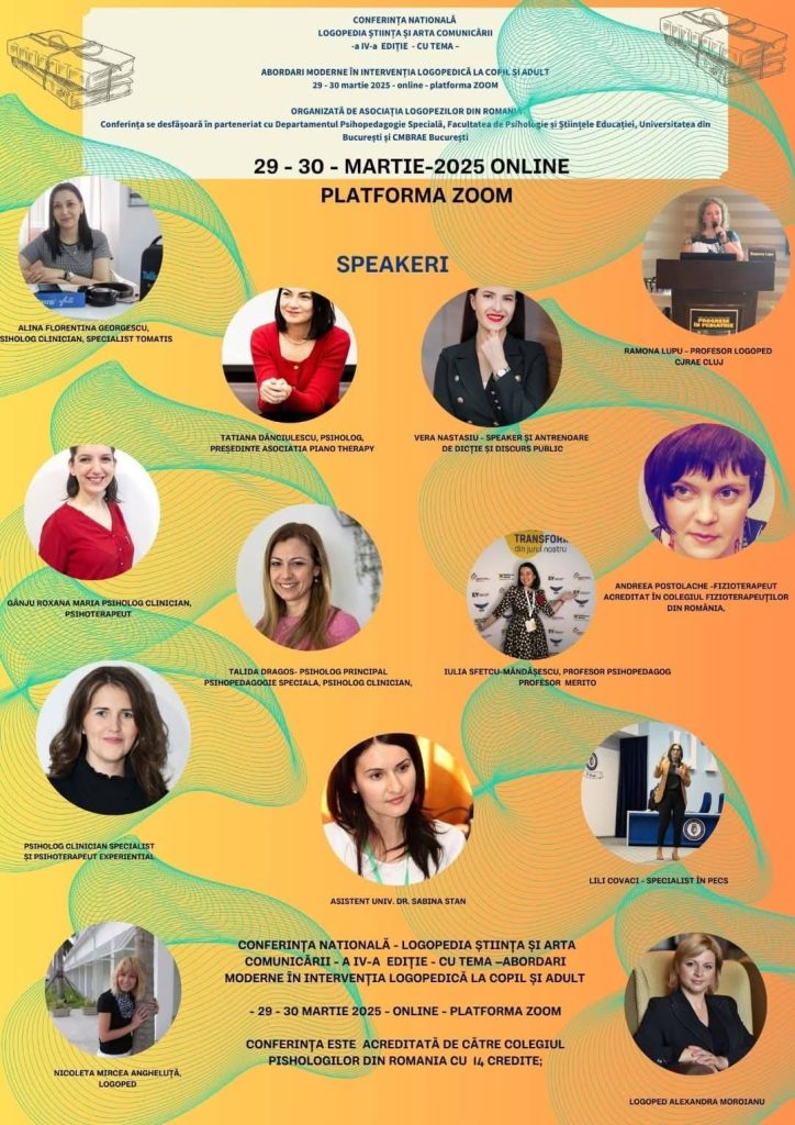 Conferința a fost acreditată de Colegiul Psihologilor din România și a reunit 314 participanți – logopezi, psihologi, consilieri școlari, cadre didactice și specialiști în intervenție terapeutică din întreaga țară.