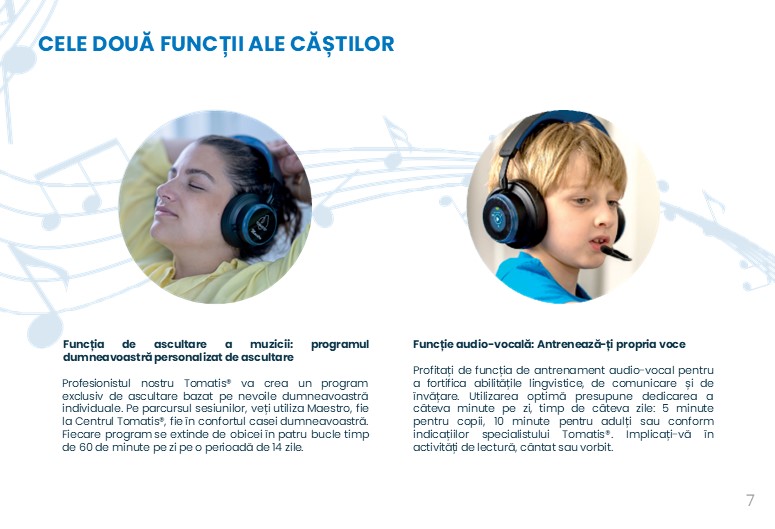 ✔ 5 programe Tomatis® – fiecare cu un ciclu complet de 8 săptămâni