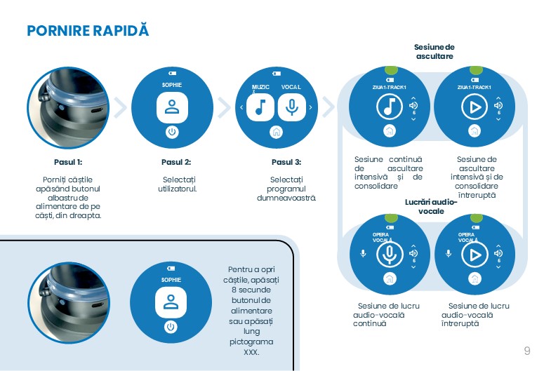 14 zile de program intensiv, cu sesiuni zilnice de audiții realizate cu echipamentul Tomatis.